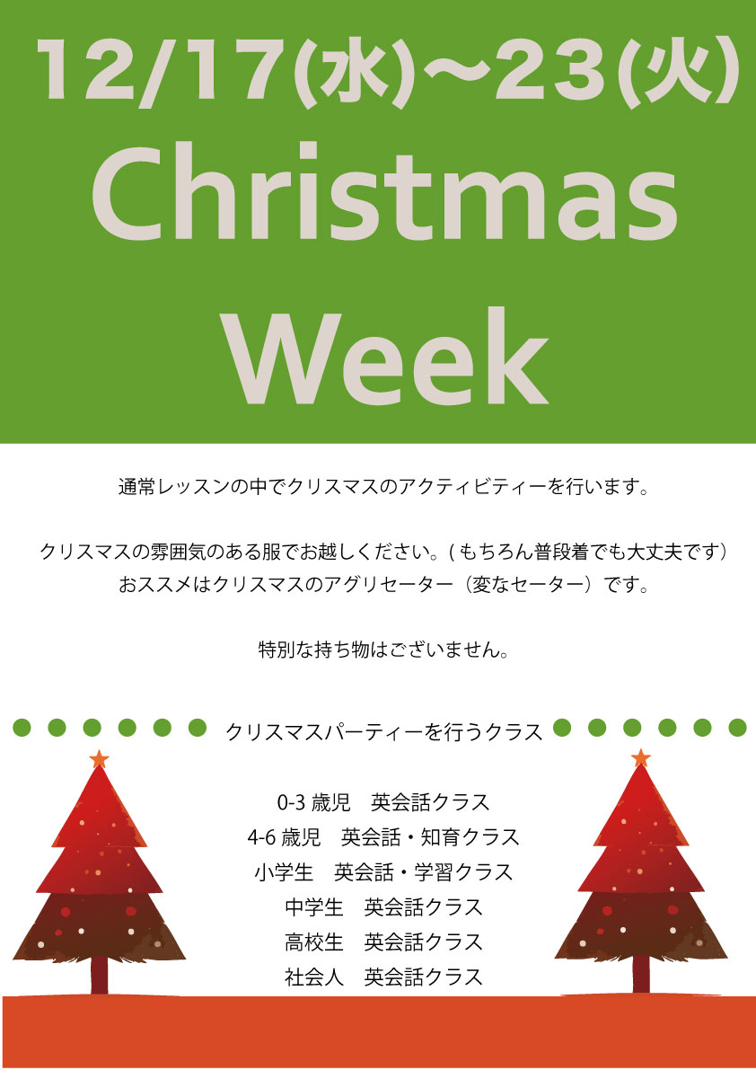 通常レッスンの中でクリスマスのアクティビティーを行います。