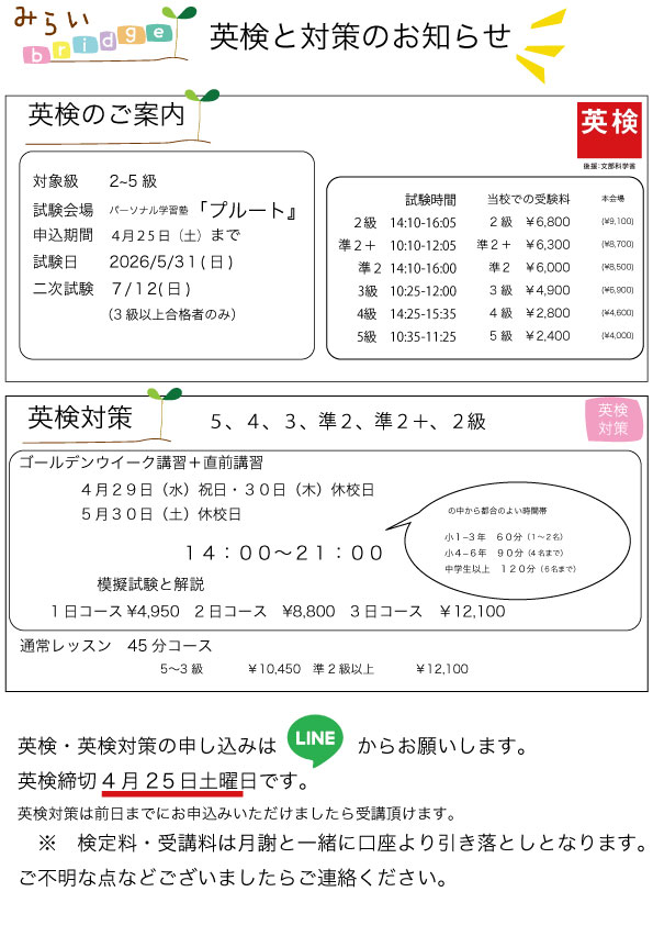 申込は希望受験級と受験者を当校のLINEへ送るだけで簡単!
